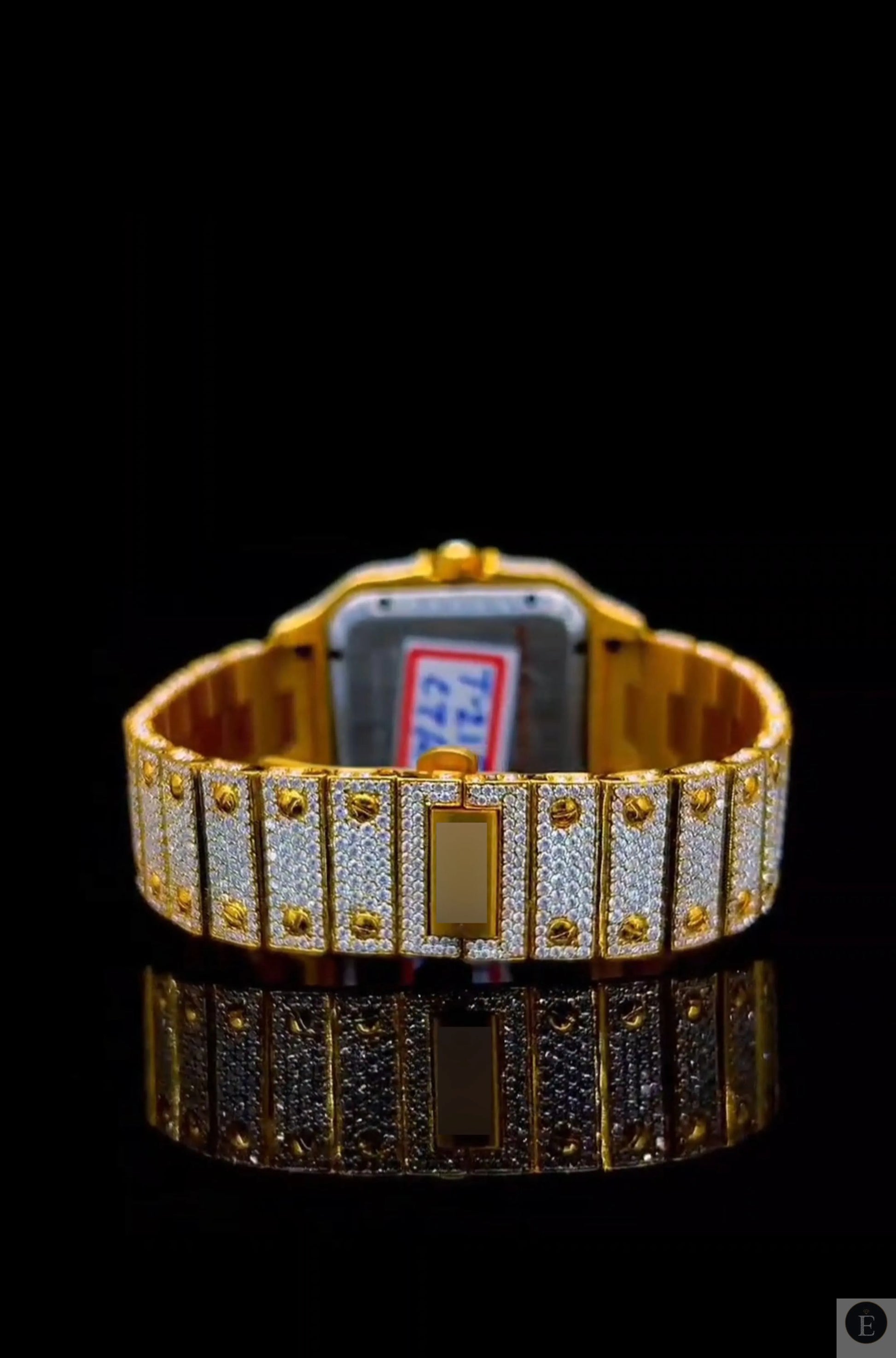 Introduction Of Iced Out Moissanite Watch Gold Square Dial Luxury 25ct
